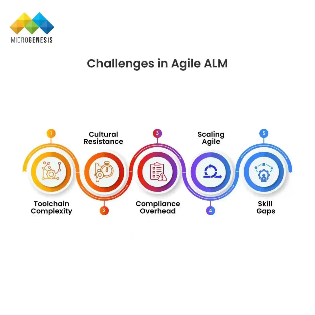While Agile ALM offers transformative benefits, the journey to adoption is not without hurdles. Many organizations underestimate the cultural, technical, and compliance complexities involved. Understanding these challenges is the first step toward overcoming them.